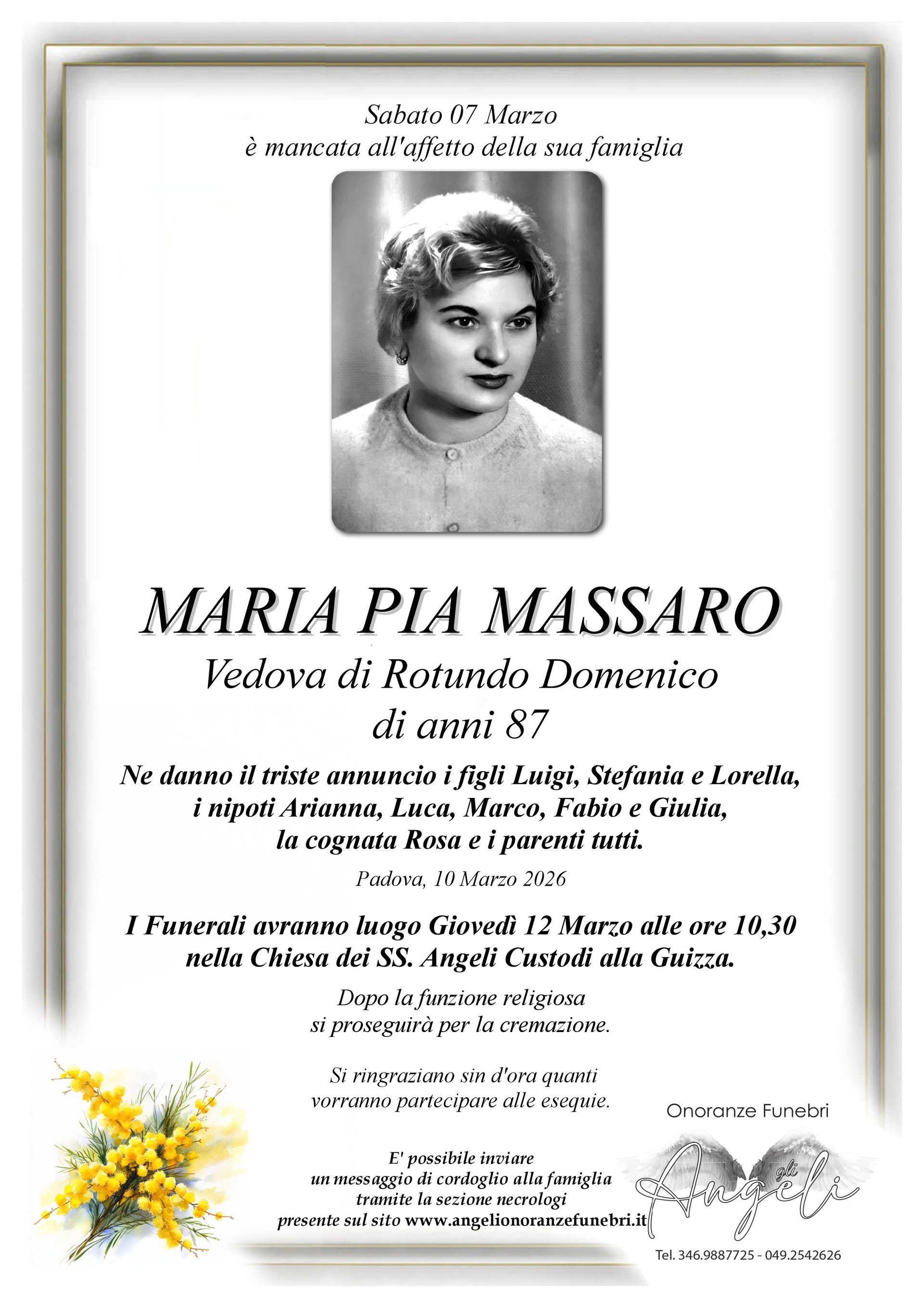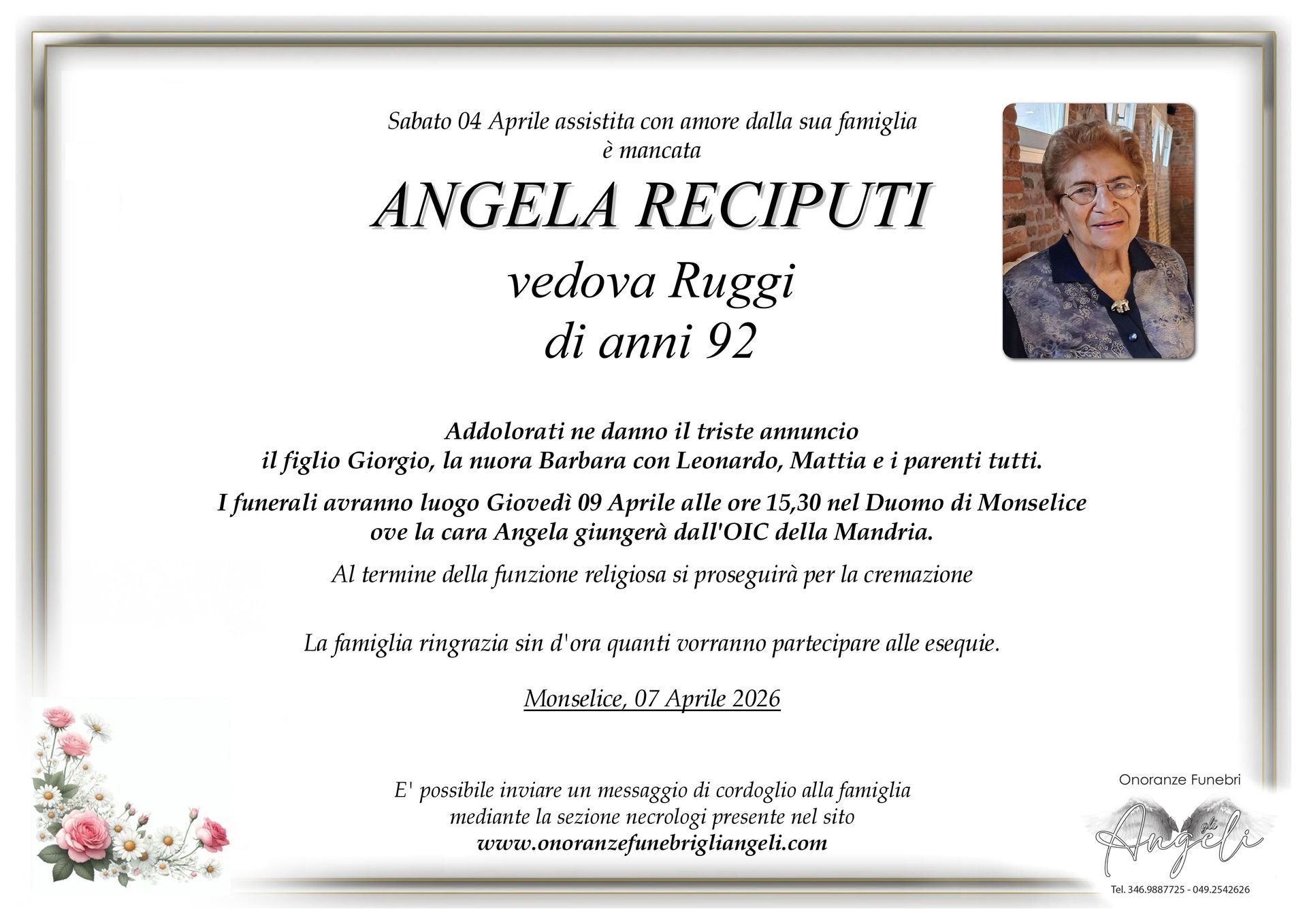 In questa sezione trovi i necrologi pubblicati da Onoranze Funebri Gli Angeli, un punto di incontro virtuale dove familiari, amici e conoscenti possono unirsi nel ricordo di chi ci ha lasciato. Ogni necrologio raccoglie le informazioni sulla cerimonia funebre ed offre la possibilità di lasciare un messaggio di cordoglio alla famiglia colpita dal lutto.