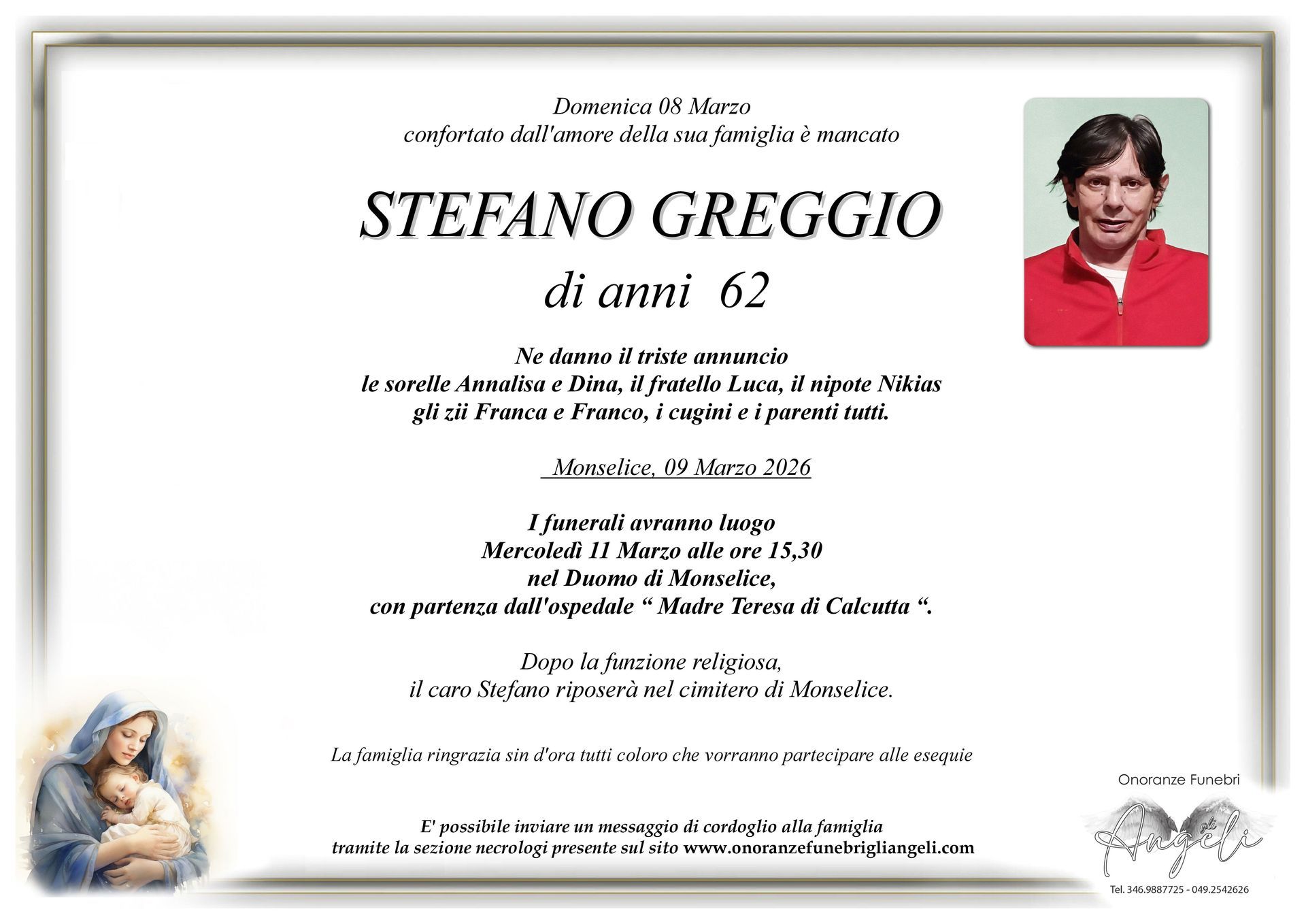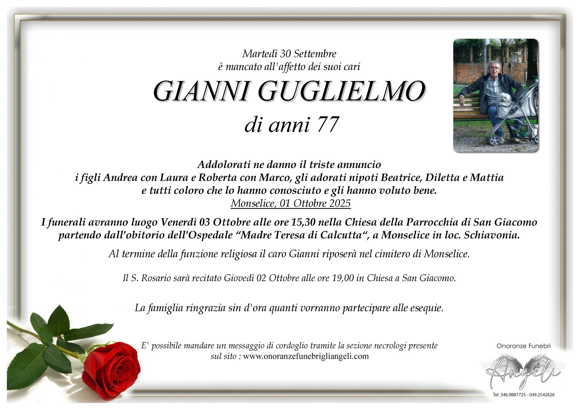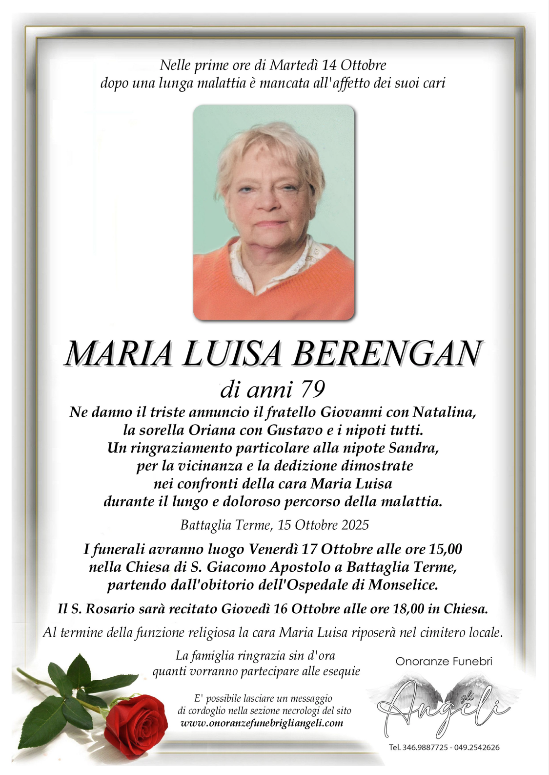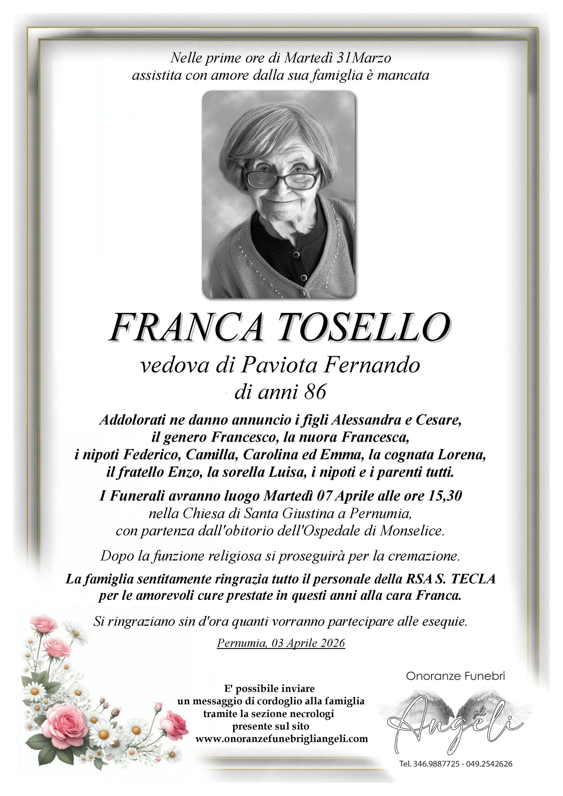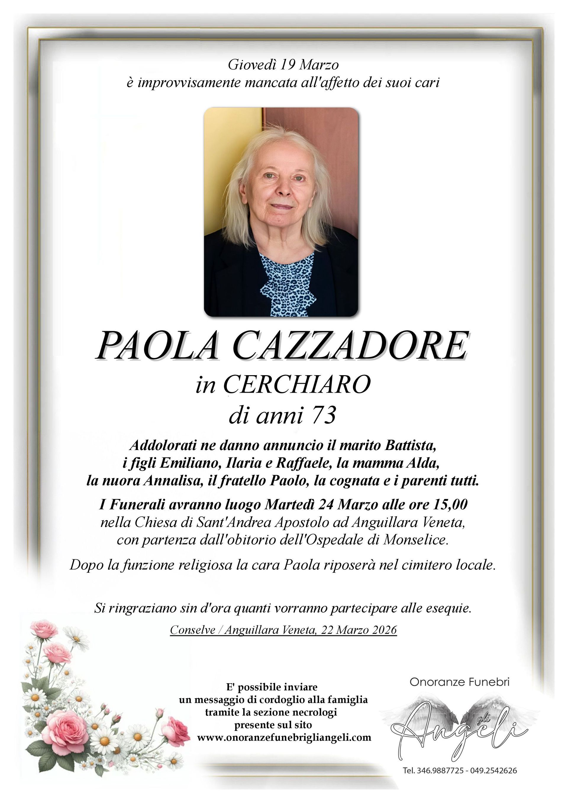 Un gesto semplice, una parola sentita, possono portare conforto a chi sta affrontando un momento di dolore. Condividi un ricordo, un pensiero o un messaggio per esprimere la tua vicinanza alla famiglia.